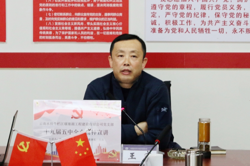 公司董事長王賓到堰塞湖公司宣講十九屆五中全會精神